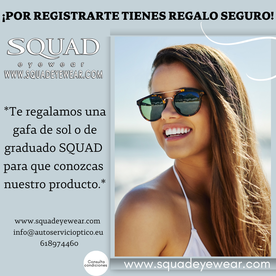 * Te regalamos una gafa de sol o de graduado SQUAD para que conozcas nuestro producto.